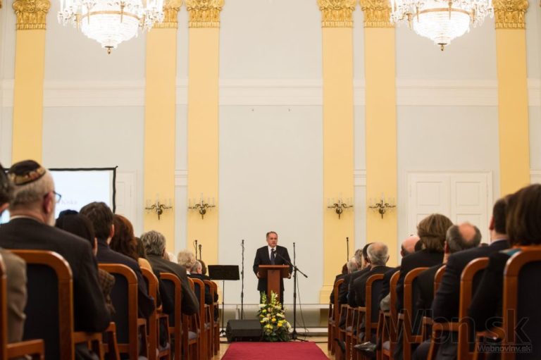 Prezident SR Andrej Kiska (uprostred) počas odovzdávania ocenení Spravodliví medzi národmi. Bratislava, 28. január 2015. Foto: SITA/Jozef Jakubčo