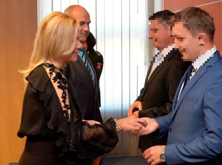 Ministerka vnútra Denisa Saková odovzdáva ocenenia policajtom, Policajný prezident Milan Lučanský a ministerka vnútra Denisa Saková odovzdávajú ocenenia policajtom, ktorí pracujú na objasnení vraždy novinára Jána Kuciaka a jeho partnerky Martiny Kušnírovej. Foto: www.facebook.com.