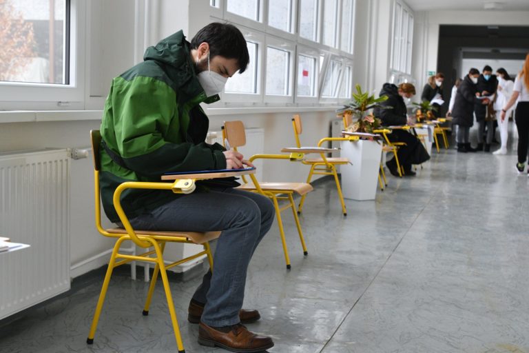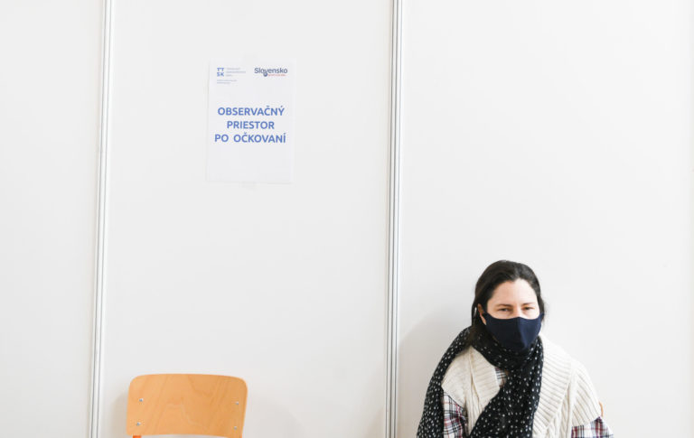Atmosféra počas vakcinovania pedagogických zamestnancov všetkých škôl pôsobiacich v Trnavskom kraji na prevenciu ochorenia COVID-19 v novootvorenom veľkokapacitnom očkovacom centre v priestoroch Strednej zdravotníckej školy v Trnave. Trnava, 20. február 2021. Foto: SITA/Martin Medňanský