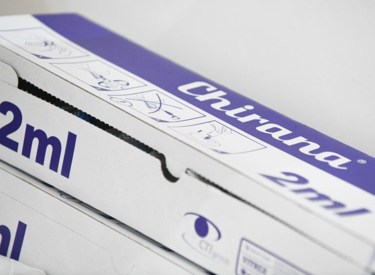 Krabica s injekčnými striekačkami počas vakcinovania pedagogických zamestnancov všetkých škôl pôsobiacich v Trnavskom kraji na prevenciu ochorenia COVID-19 v novootvorenom veľkokapacitnom očkovacom centre v priestoroch Strednej zdravotníckej školy v Trnave. Trnava, 20. február 2021. SITA/Martin Medňanský