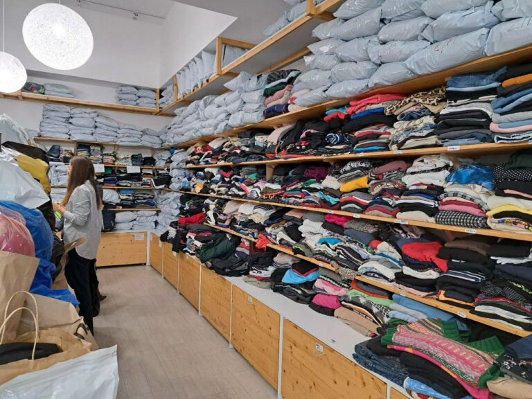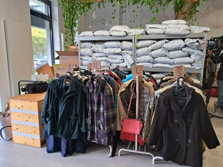Odevná banka v Bratislave, kde darcovia môžu priniesť čisté nosené oblečenie v dobrom stave. Foto: SITA/Slávka Ambrová.