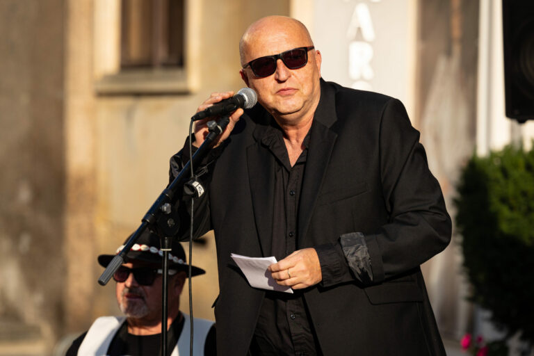 Režisér Roman Polák počas slávnostného odhalenia dlaždice Jurajovi Kukurovi na Filmovom chodníku slávy pred Divadlom P. O. Hviezdoslava v Bratislave. Bratislava, 19. september 2024. Foto: SITA/Jana Birošová