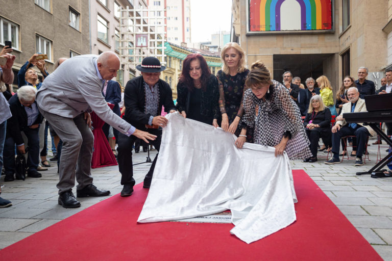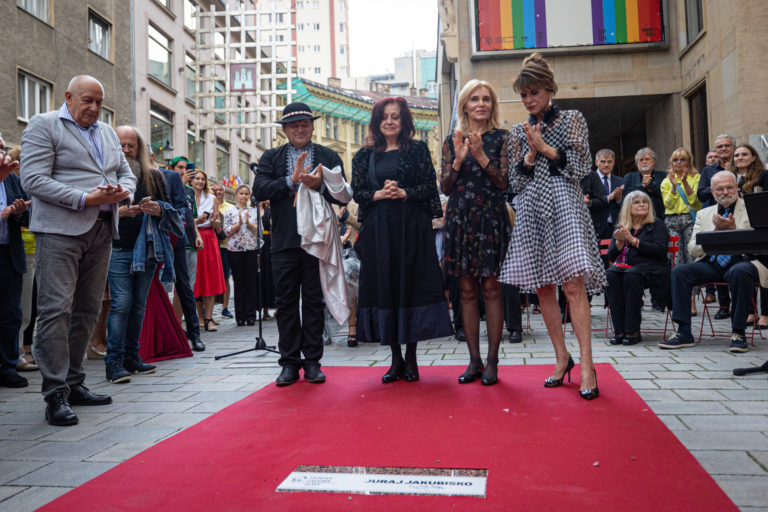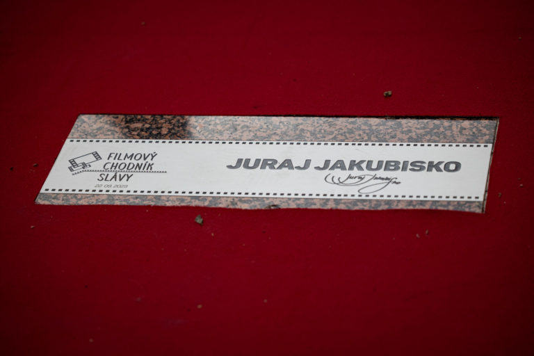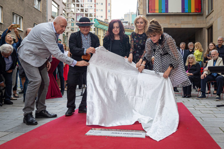 Dlaždica Juraja Jakubiska počas slávnostného odhalenia na Filmovom chodníku slávy. Bratislava, 22. september 2023. Foto: SITA/Jana Birošová