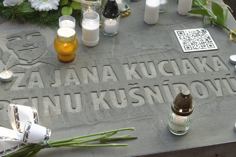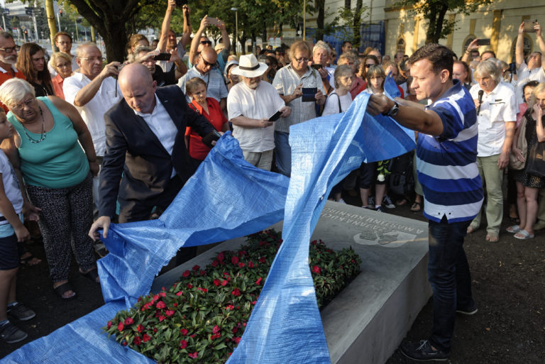 Odhalenie pamätníka Jánovi Kuciakovi a jeho snúbenici Martine Kušnírovej v deň 50. výročia vpádu vojsk Varšavskej zmluvy do Československa. Pamätník mladej dvojice je umiestnený v parčíku na začiatku Južnej triedy, v blízkosti Kostola sv. Ducha v Košiciach. Košice, 21. august 2018. Foto: SITA/Ivan Fleischer