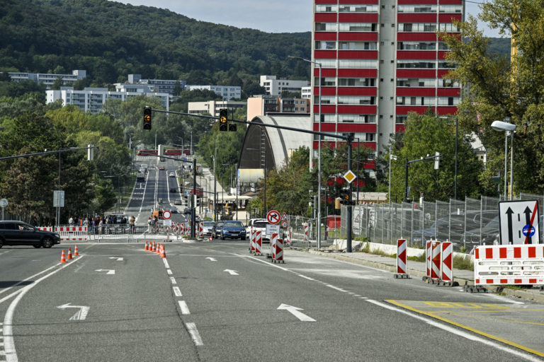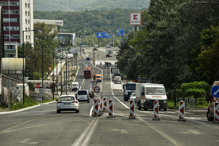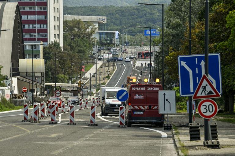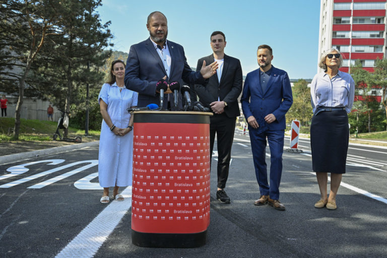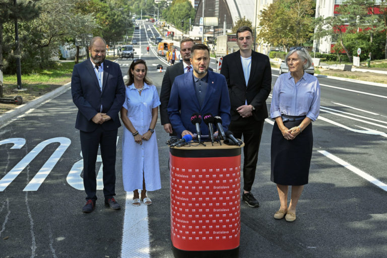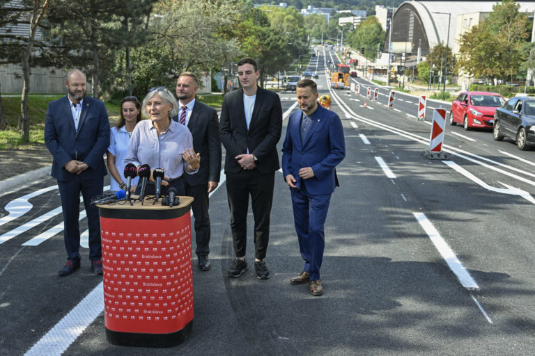 Nová štvorprúdová cesta na Harmincovej ulici počas tlačovej konferencie k jej odovzdaniu. Bratislava 13. september 2023. Foto: SITA/Milan Illík