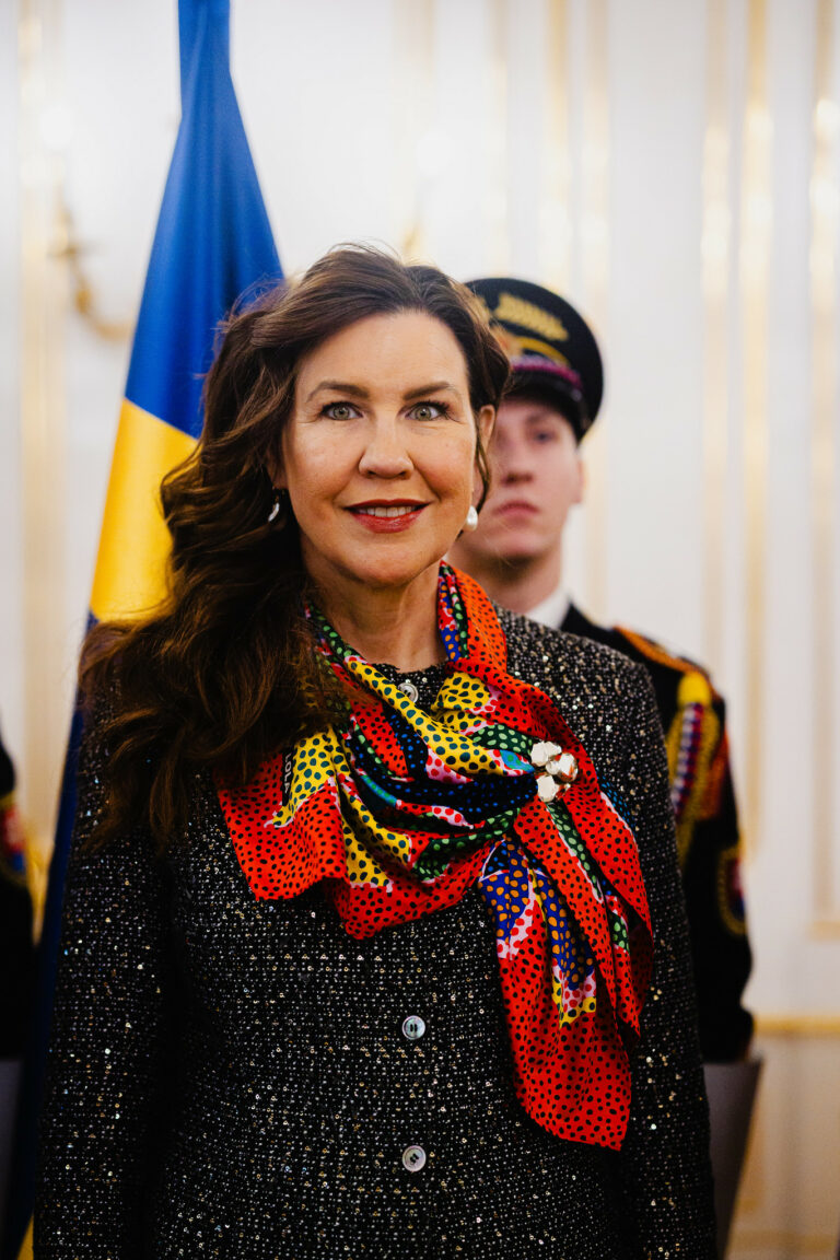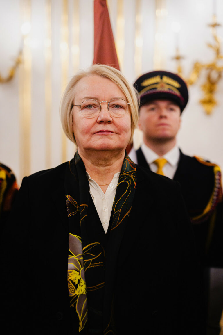 Nová nerezidentná mimoriadna a splnomocnená veľvyslankyňa v Lotyšskej republike Ingrīda Levrence počas prijatia poverovacích listín piatich nerezidentných mimoriadnych a splnomocnených veľvyslancov prezidentom SR v Prezidentskom paláci. Bratislava, 3. február 2026. Foto: SITA/Kancelária prezidenta SR