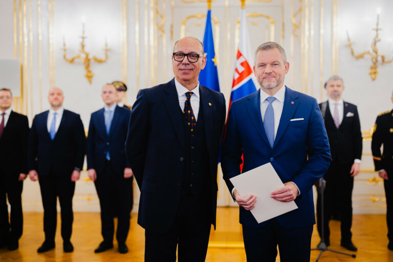 Sprava: Prezident SR Peter Pellegrini a nový nerezidentný mimoriadny a splnomocnený veľvyslanec Jaume Serra Serra v Andorrskom kniežatstve počas prijatia poverovacích listín piatich nerezidentných mimoriadnych a splnomocnených veľvyslancov v Prezidentskom paláci. Bratislava, 3. február 2026. Foto: SITA/Kancelária prezidenta SR