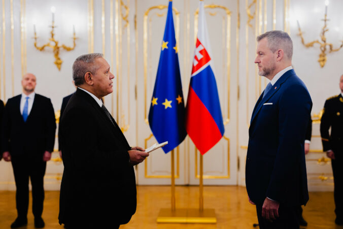 Nový nerezidentný mimoriadny a splnomocnený veľvyslanec Vladimir Adolfo Franco Sousa v Panamskej republike počas prijatia poverovacích listín piatich nerezidentných mimoriadnych a splnomocnených veľvyslancov prezidentom SR v Prezidentskom paláci. Bratislava, 3. február 2026. Foto: SITA/Kancelária prezidenta SR