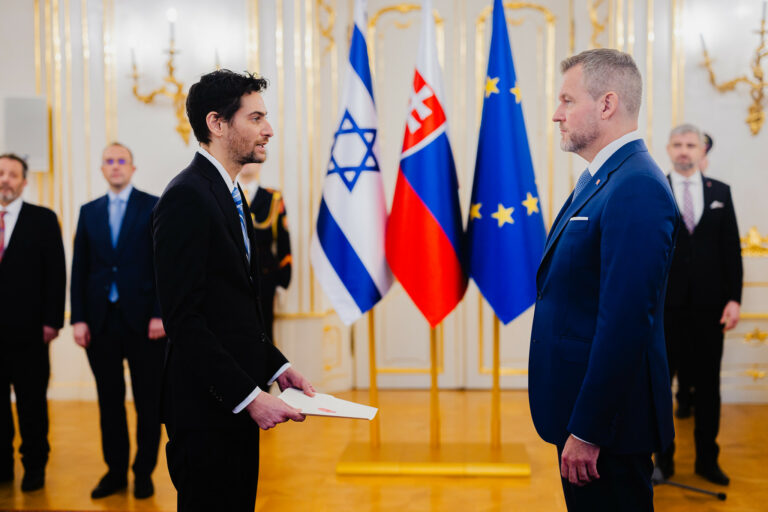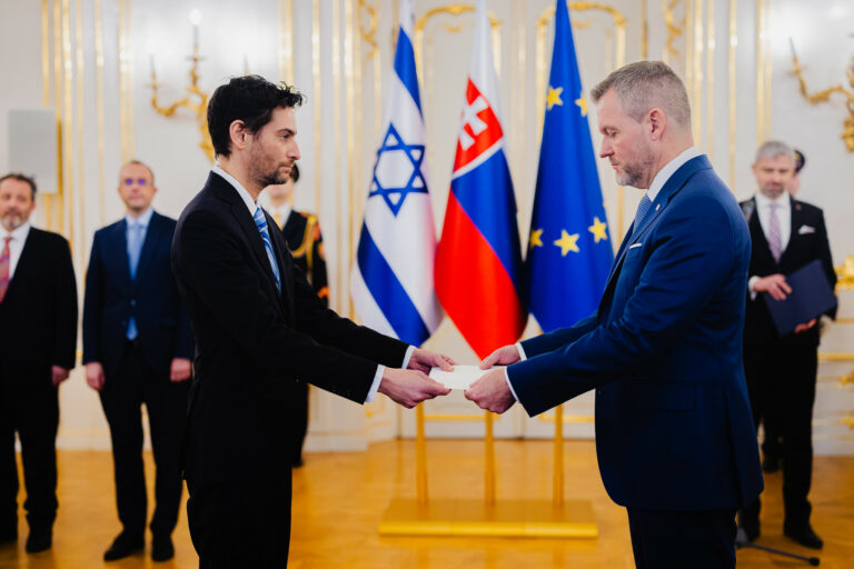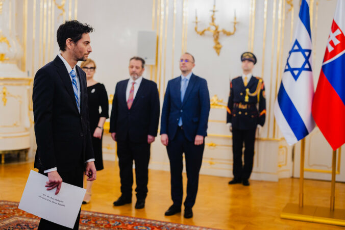 Nový izraelský veľvyslanec na Slovensku Jacob Yanovsky počas prijatia poverovacích listín od mimoriadneho a splnomocneného veľvyslanca Izraelského štátu v SR prezidentom SR v Prezidentskom paláci. Bratislava, 3. február 2026. Foto: SITA/Kancelária prezidenta SR