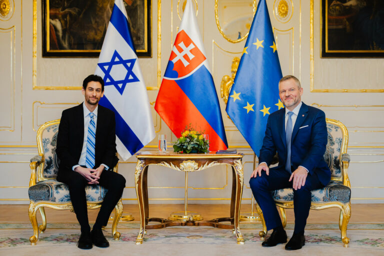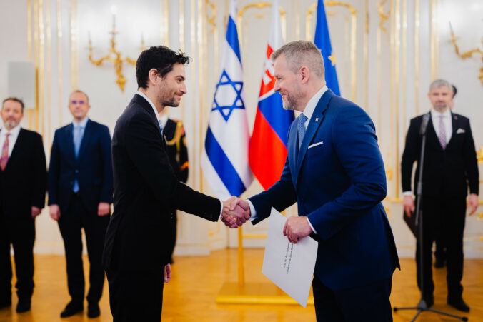 Nový izraelský veľvyslanec na Slovensku Jacob Yanovsky (vľavo) počas prijatia poverovacích listín od mimoriadneho a splnomocneného veľvyslanca Izraelského štátu v SR prezidentom SR v Prezidentskom paláci. Bratislava, 3. február 2026. Foto: SITA/Kancelária prezidenta SR