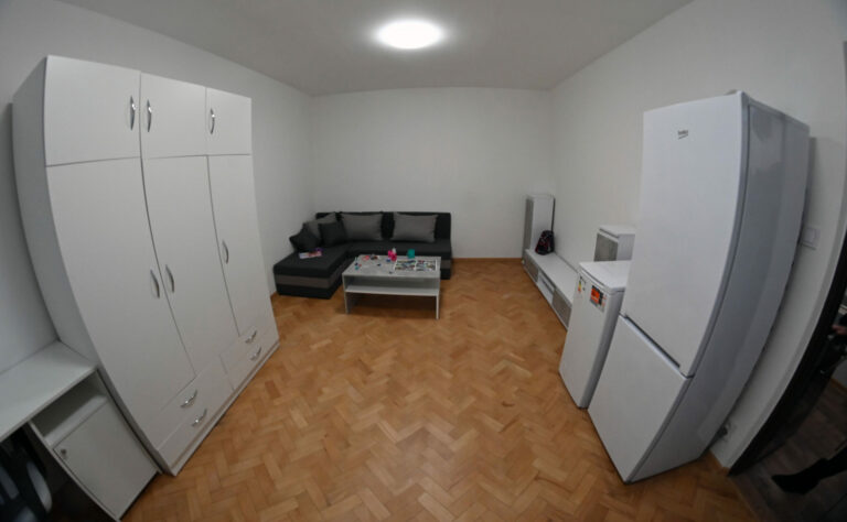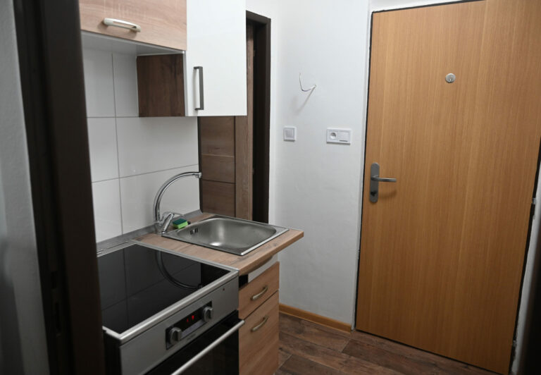 Bytovka, v ktorej dnes odovzdali tretí zo šiestich dostupných sociálnych nájomných bytov v Košiciach mame Olene Ivakh s dcérkou Ninou. Košice, 28. január 2025. Foto: SITA/Viktor Zamborský