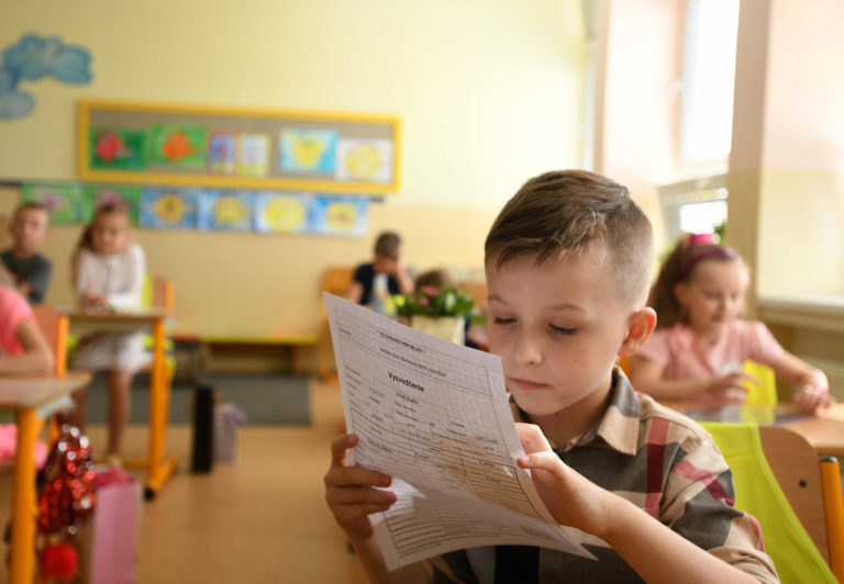 Atmosféra v triede piateho ročníka počas odovzdávania koncoročných vysvedčení na Základnej škole v Starej Turej. Foto: SITA/Martin Medňanský