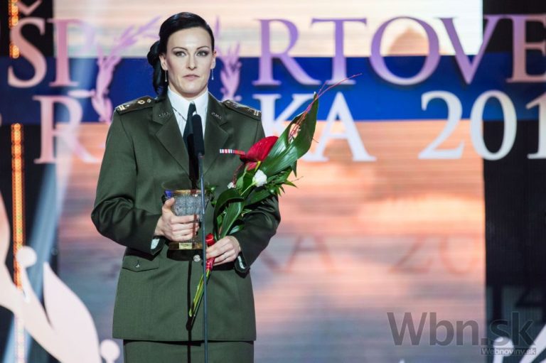 Slovenská reprezentantka v biatlone Anastasia Kuzminová (prvé miesto jednotlivci 2014) počas vyhlásenia výsledkov ankety Klubu športových redaktorov SSN Športovec roka 2014 na Slovensku. Bratislava, 22. december 2014. Foto: SITA/Jozef Jakubčo