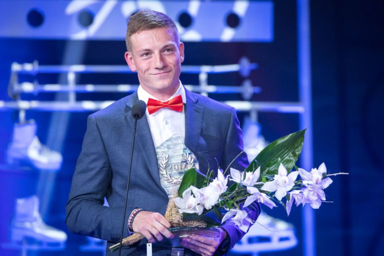 Špeciálny olympionik roka Jakub Kriššák počas vyhlásenia výsledkov ankety Klubu športových redaktorov SSN Športovec roka 2017 na Slovensku. Bratislava, 22. december 2017. Foto: SITA/Diana Černáková