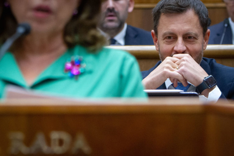Predseda NR SR Boris Kollár (hore) počas hlasovania o návrhu skupiny poslancov NR SR na vyslovenie nedôvery podpredsedovi vlády a ministrovi financií SR Igorovi Matovičovi. Bratislava, 4. október 2022. Foto: SITA/Diana Černáková