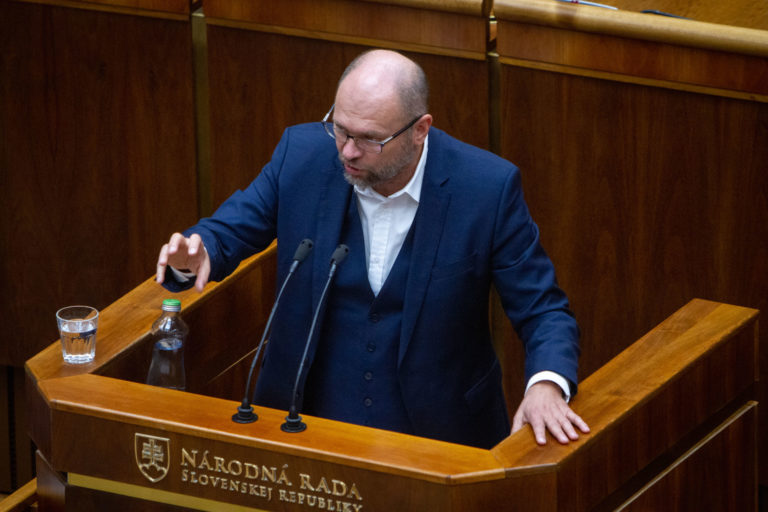 Poslanec NR SR za stranu Sloboda a Solidarita (SaS) Richard Sulík počas rokovania mimoriadnej 73. schôdze Národnej rady SR o návrhu skupiny poslancov NR SR na vyslovenie nedôvery podpredsedovi vlády a ministrovi financií SR Igorovi Matovičovi. Bratislava, 28. september 2022. Foto: SITA/Diana Černáková