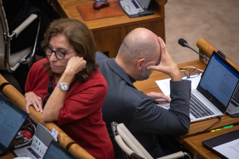Zľava: Nezaradení poslanci NR SR Hlas Peter Pellegrini a Richard Raši počas hlasovania o návrhu skupiny poslancov NR SR na vyslovenie nedôvery podpredsedovi vlády a ministrovi financií SR Igorovi Matovičovi. Bratislava, 4. október 2022. Foto: SITA/Diana Černáková