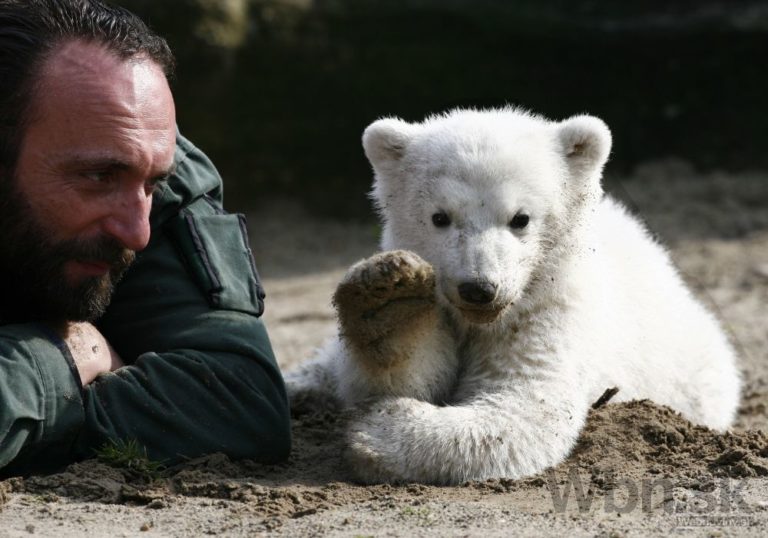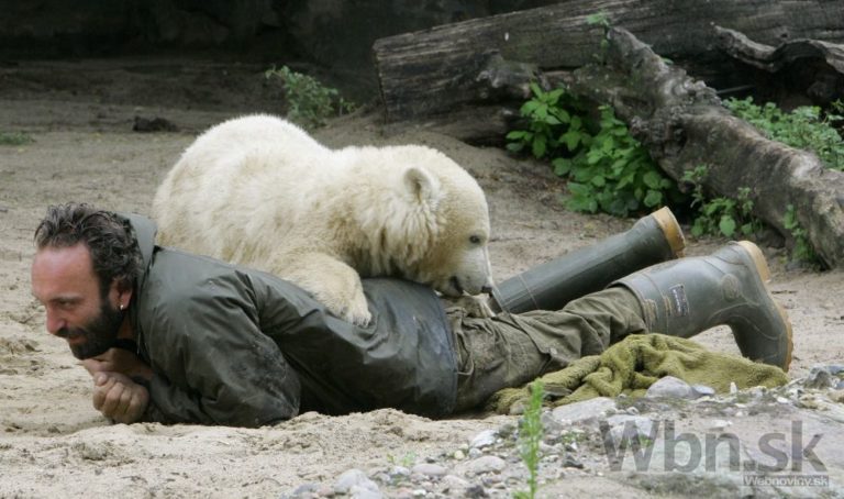 Slávny medveď Knut prišiel na svet v roku 2006. Jeho brat prežil len štyri dni. Knut strávil najskôr 44 v inkubátore a neskôr sa o neho staral 24 hodín denne už zosnulý ošetrovateľ Thomas Dörflein. Medveď, ktorého si obľúbili ľudia z celého sveta uhynul 19. marca 2011, keď sa pred zrakmi návštevníkov a návštevníčok zoo zrútil do vody. Ešte pred pádom dostal nekontrolovateľné svalové kŕče, ktoré spôsobila encefalitída. Na fotorafii so svojím ošetrovateľom Thomasom Dörfleinom. Foto: SITA/AP