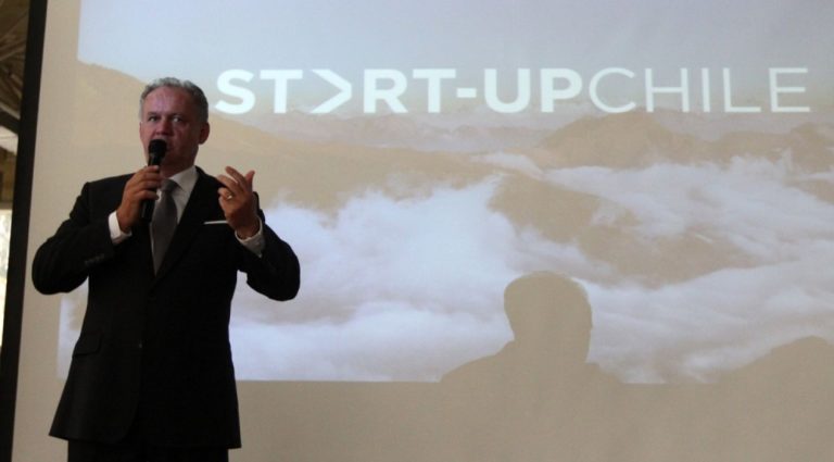 Slovenský prezident Andrej Kiska v prejave počas návštevy centra pre rozvoj začínajúcich firiem - Start-Up Chile. Čilská republika, 1. august 2016. Foto: SITA//Kancelária prezidenta SR