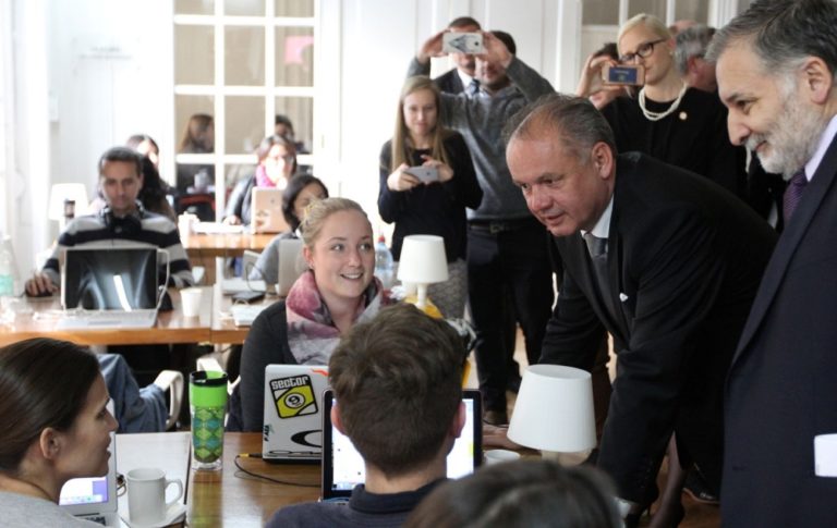 Slovenský prezident Andrej Kiska (druhý sprava) počas návštevy centra pre rozvoj začínajúcich firiem - Start-Up Chile. Čilská republika, 1. august 2016. Foto: SITA//Kancelária prezidenta SR