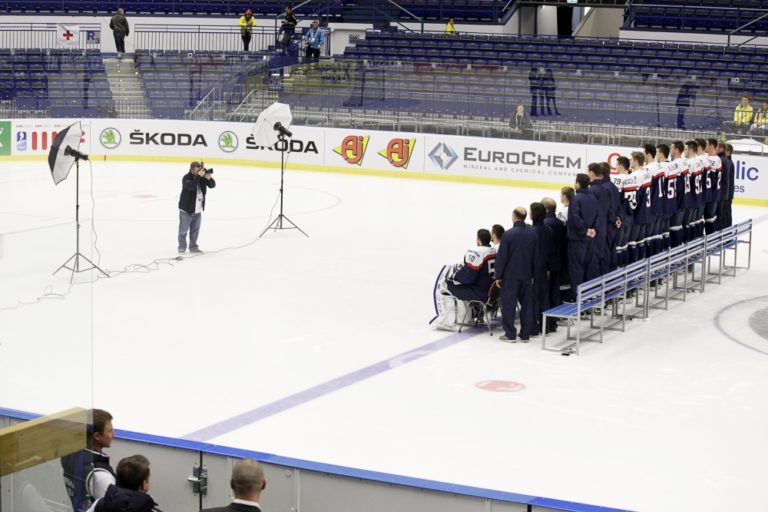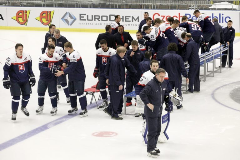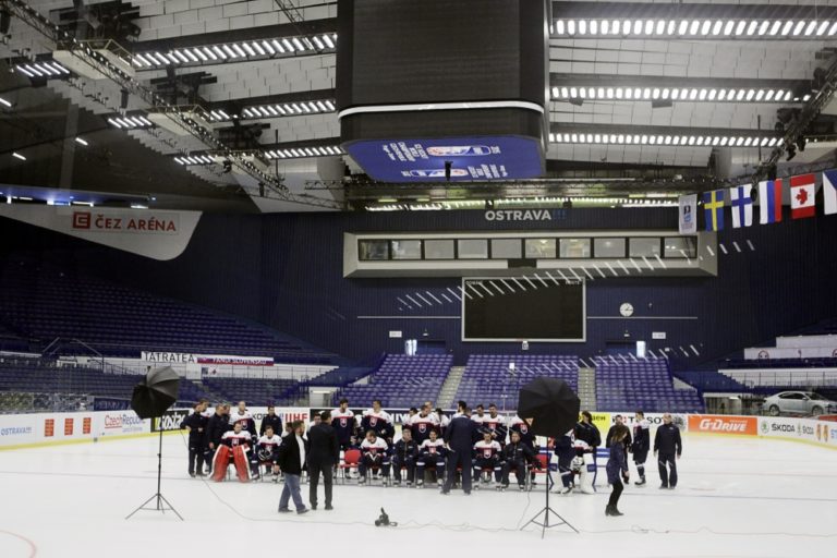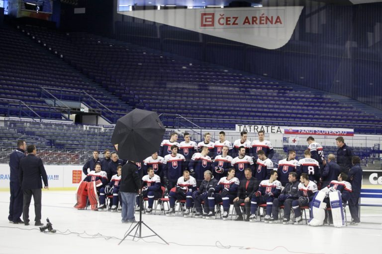 Koniec oficiálneho fototermínu slovenskej reprezentácie počas majstrovstiev sveta v ľadovom hokeji 2015 v Českej republike. Ostrava, Česká republika, 4. máj 2015. Foto: SITA/Ján Viazanička
