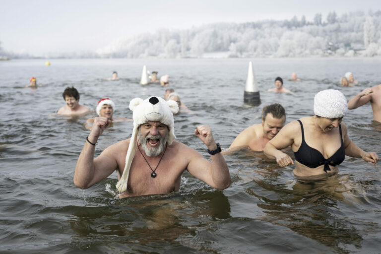 Tradičné plávanie na oslavu prichádzajúceho Nového roka vo Švajčiarsku. Foto: Anthony Anex/Keystone via AP