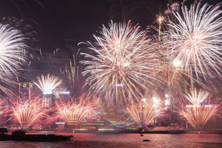 Ohňostroje na oslavu Nové roka v prístave v Hongkongu. Foto: SITA/AP