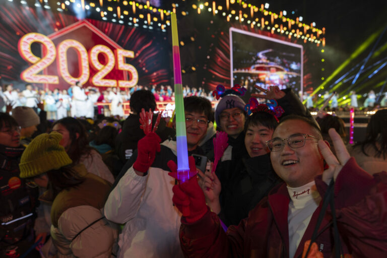 Ľudia v uliciach oslavujú príchod roka v čínskom Pekingu. Foto: SITA/AP.
