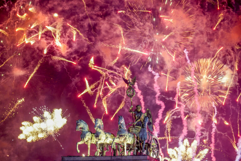 Novoročný ohňostroj nad Brandenburskou bránou v Berlíne. Foto: SITA/AP.