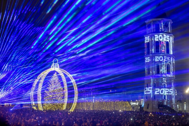 Ľudia oslavujú nový rok vo Vilniuse v Litve. Foto: SITA/AP.