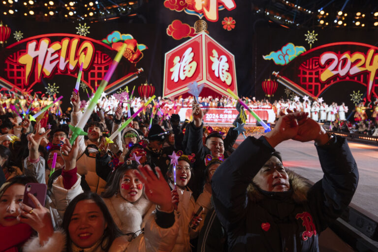 Ľudia vítajú príchod Nového roku 2024 v meste Beijing v Číne. Foto: SITA/AP