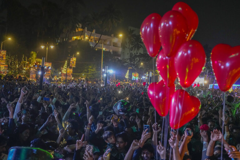 Ľudia oslavujú príchod roka 2024 v meste Mumbai v Indii. Foto: SITA/AP