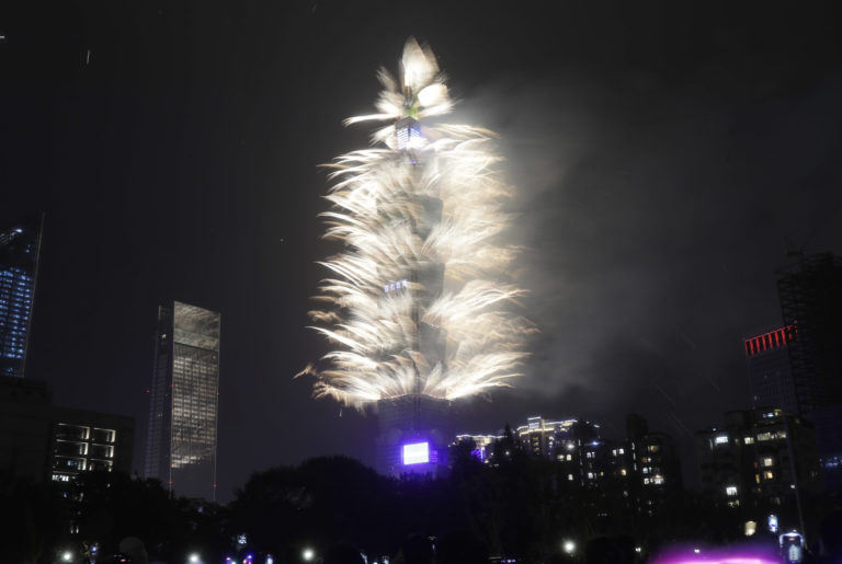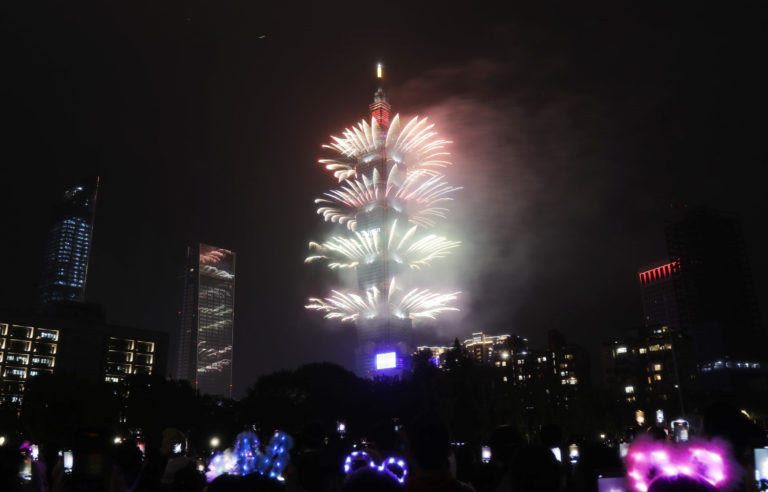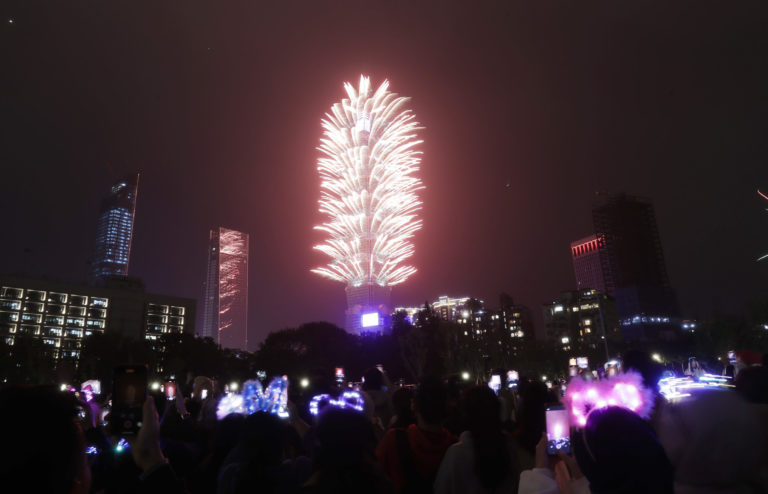 Ohňostroj a vítanie Nového roku 2024 v meste Taipei na Taiwane. Foto/SITA/AP