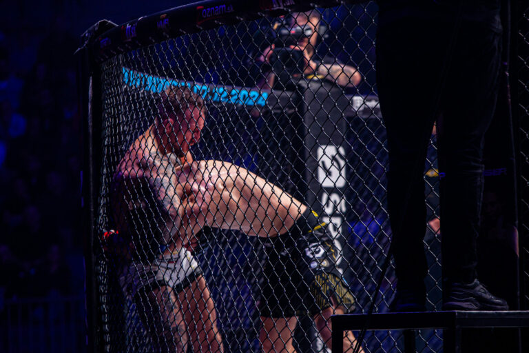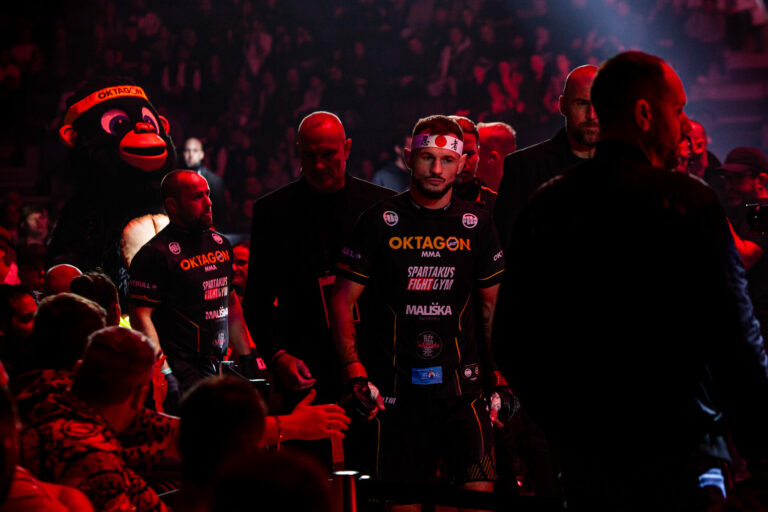 Tomáš Cigánik (SVK) počas zápasu v MMA (zmiešané bojové umenie) v rámci zápasového večera Oktagon 63 v priestoroch Zimného štadióna Ondreja Nepelu v Bratislave. Bratislava, 9. november 2024. Foto: SITA/Bokor Tomáš