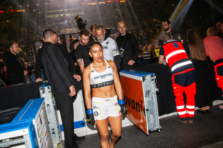 Mileide Simplicio (BRA) po prehre s technickým KO v zápase v MMA (zmiešané bojové umenie) v rámci zápasového večera Oktagon 63 v priestoroch zimného štadióna Ondreja Nepelu v Bratislave. Bratislava, 9. november 2024. Foto: SITA/Bokor Tomáš