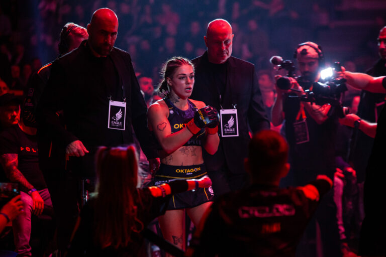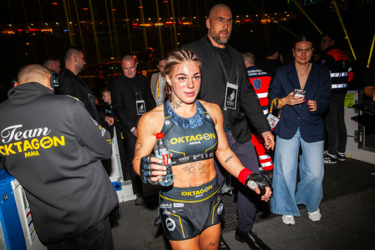 Veronika Smolková (SVK) pred zápasom v MMA (zmiešané bojové umenie) v rámci zápasového večera Oktagon 63 v priestoroch Zimného štadióna Ondreja Nepelu v Bratislave. Bratislava, 9. november 2024. Foto: SITA/Bokor Tomáš