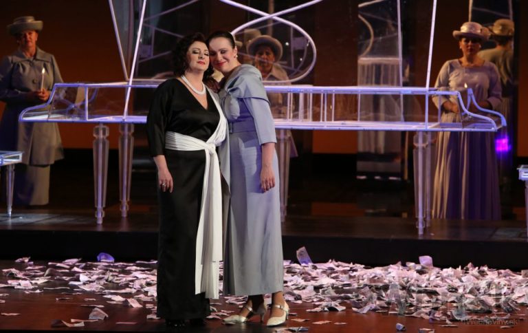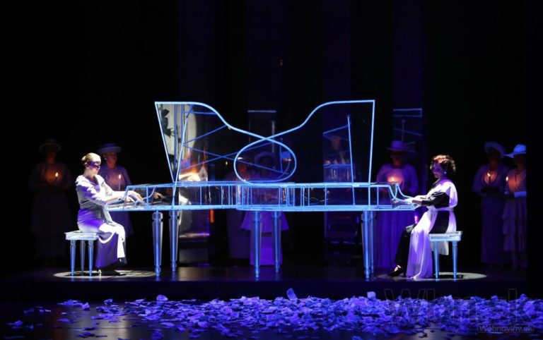 Nesmrteľná téma boja o moc ožije v novinke prvej opernej scény Slovenska, v opere Piotra Iľjiča Čajkovského Piková dáma. Na snímke Adriana Kohútková (Líza), Terézia Kružliaková (Polina). Bratislava, 20. máj 2014. Foto: SITA/SND/Jozef Barinka