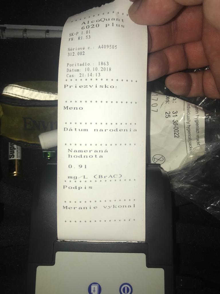 Opitý kamionista jazdil v stredu večer v protismere po diaľnici D1. Vodičovi pri dychovej skúške namerali skoro 1,9 promile, 11. október 2018. Foto: SITA/KR PZ Bratislava