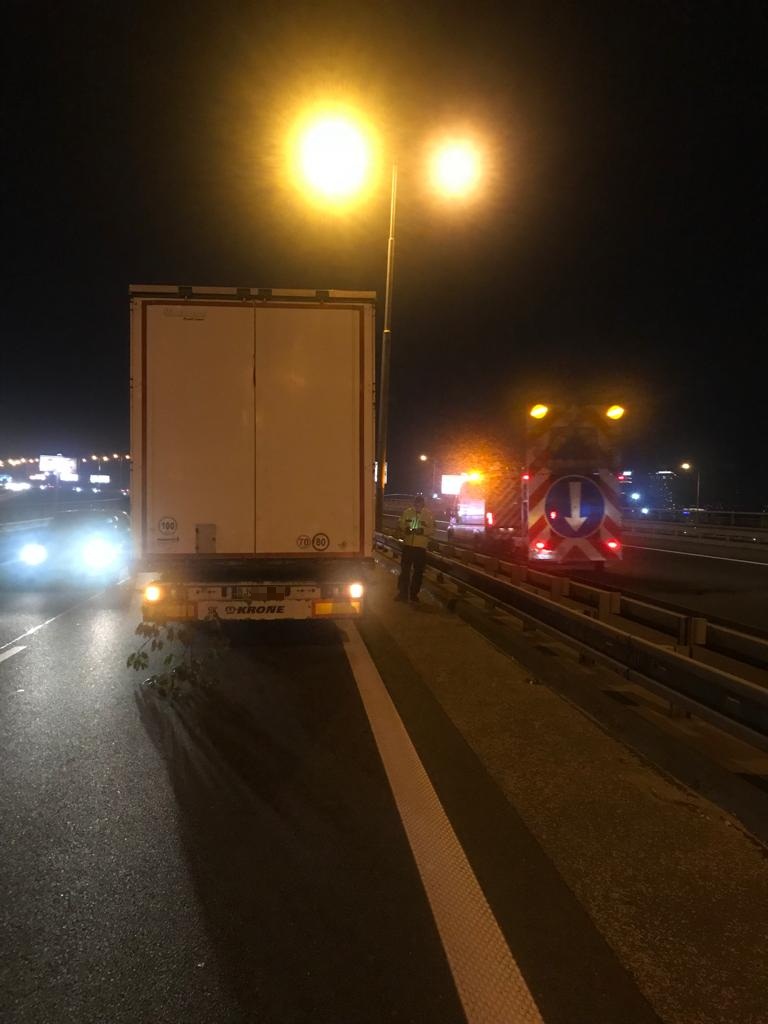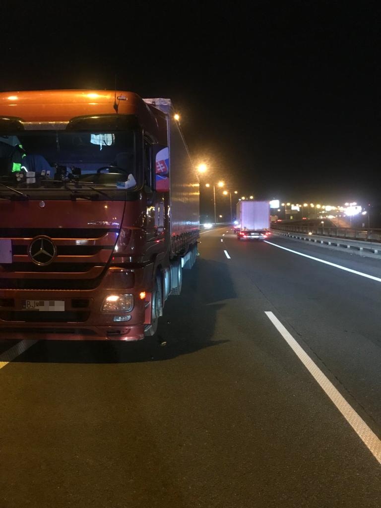 Opitý kamionista jazdil v stredu večer v protismere po diaľnici D1, 11. október 2018. Foto: SITA/KR PZ Bratislava