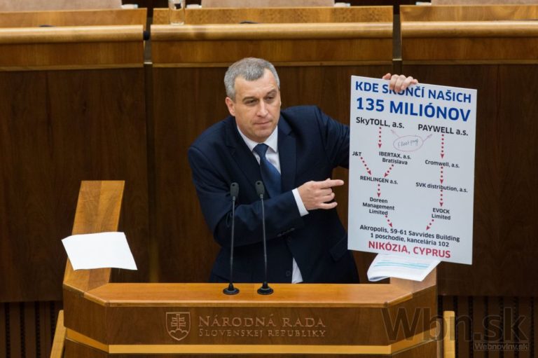 Sprava: Poslanec NR SR za KDH Pavol Zajac a minister dopravy, výstavby a regionálneho rozvoja SR Ján Počiatek počas rokovania 45. schôdze Národnej rady SR s návrhom skupiny poslancov NR SR na vyslovenie nedôvery ministrovi dopravy, výstavby a regionálneho rozvoja SR. Bratislava, 12. december 2014. Foto: SITA/Jozef Jakubčo
