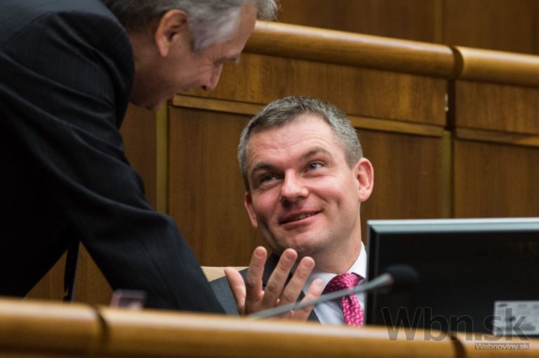 Zľava: Predseda vlády SR Robert Fico a predseda NR SR Peter Pellegrini počas rokovania 45. schôdze Národnej rady SR s návrhom skupiny poslancov NR SR na vyslovenie nedôvery ministrovi dopravy, výstavby a regionálneho rozvoja SR. Bratislava, 12. december 2014. Foto: SITA/Jozef Jakubčo