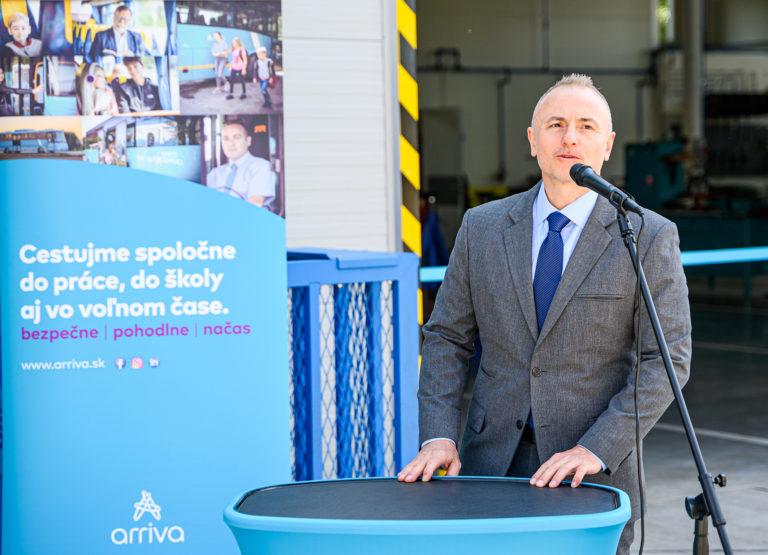 Generálny riaditeľ spoločností ARRIVA na Slovensku Michal Horák počas otvorenia novej opravárenskej haly spoločnosti Arriva v Leviciach, ktorá vznikla aj vďaka cezhraničnej spolupráci a finačnej podpore od CED - Stredoeurópskej siete pre ekonomický rozvoj. Levice, 25. júl 2024. Foto: SITA/Martin Havran