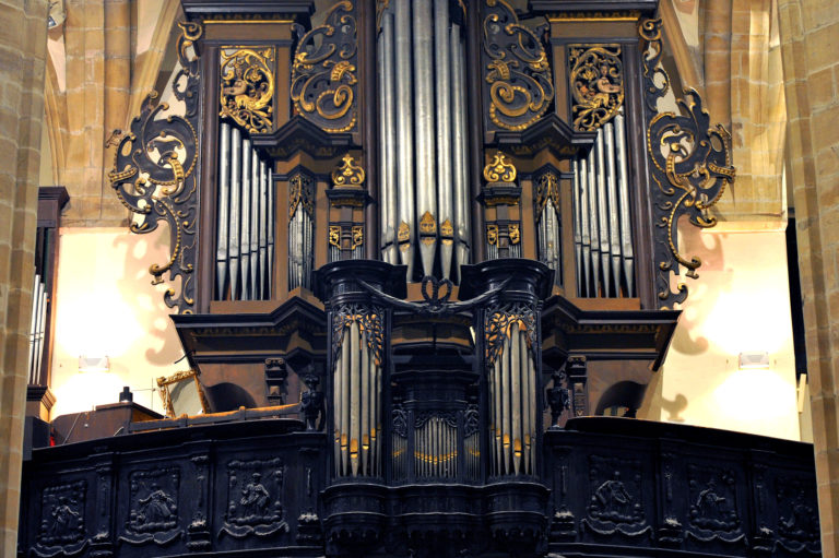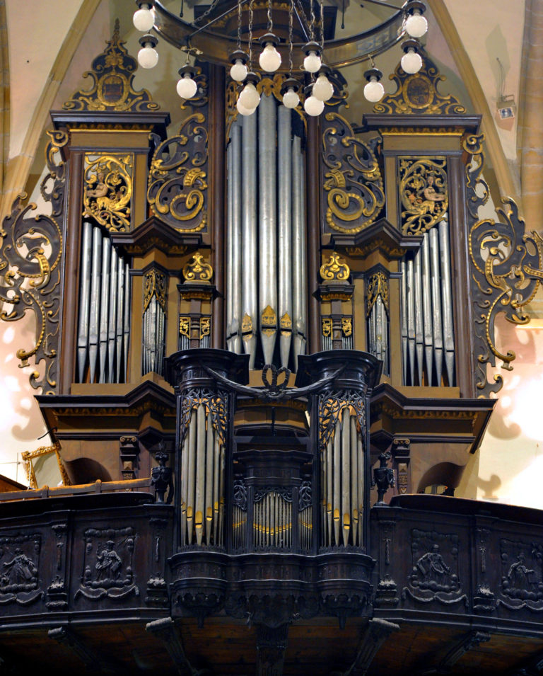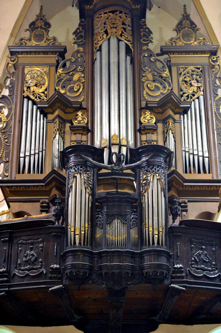 Organ v Konkatedrále sv. Mikuláša v Prešove pochádzajúci zo 17. storočia. Prešov, 3. október. Foto: SITA/Viktor Zamborský