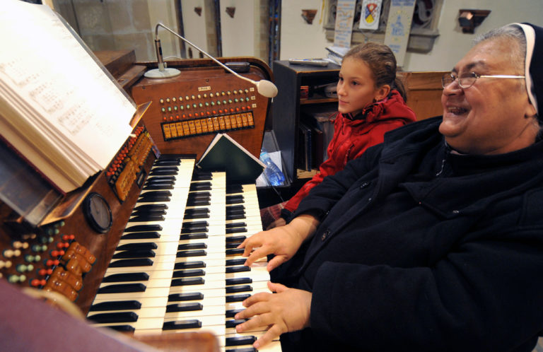 Rehoľná sestra hrá na organ v Konkatedrále sv. Mikuláša v Prešove, ktorý pochádza zo 17. storočia. Prešov, 3. október. Foto: SITA/Viktor Zamborský