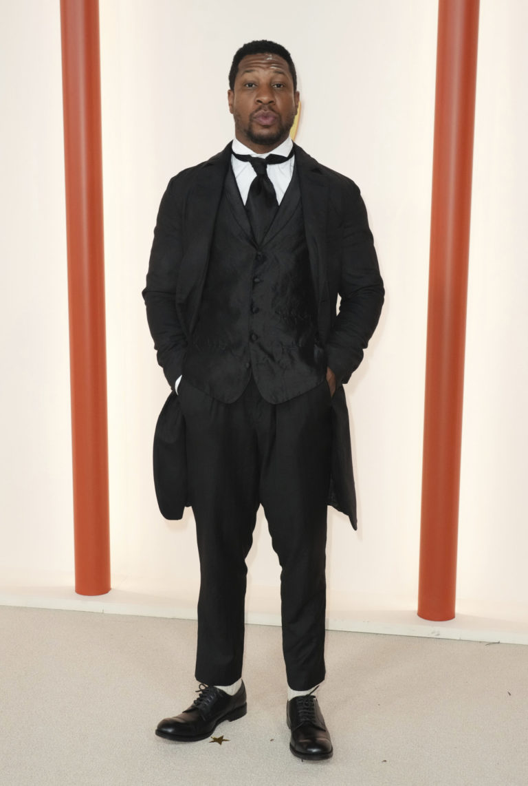 Jonathan Majors počas príchodu na 95. ročník udeľovania cien americkej Akadémie filmových umení a vied (Oscar 2023). Los Angeles (Dolby Theatre), 12. marec 2023. Foto: Jordan Strauss/Invision/AP.