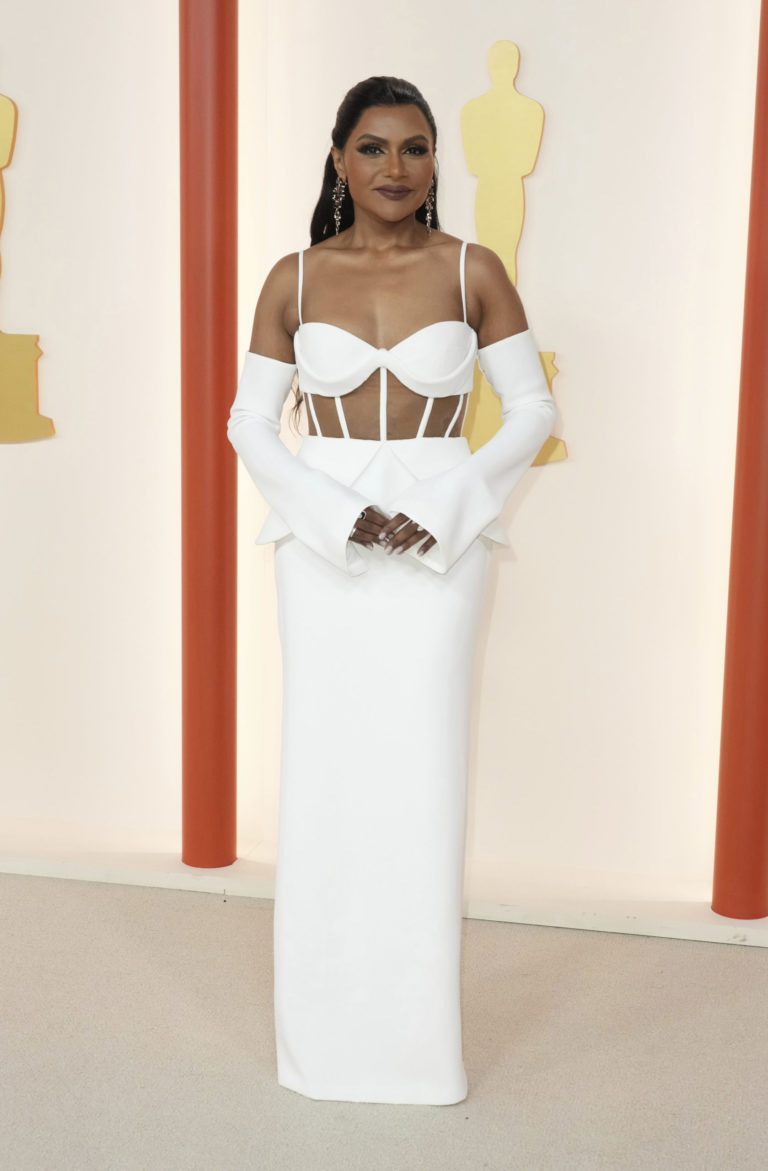 Mindy Kaling počas príchodu na 95. ročník udeľovania cien americkej Akadémie filmových umení a vied (Oscar 2023). Los Angeles (Dolby Theatre), 12. marec 2023. Foto: Jordan Strauss/Invision/AP.