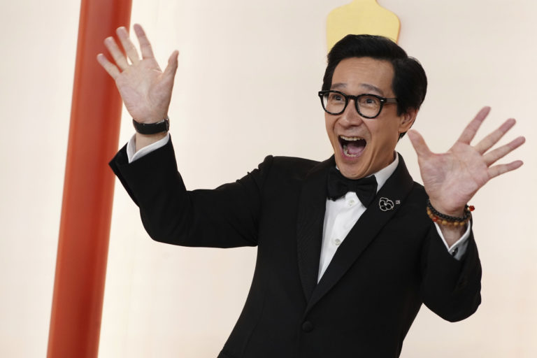 Ke Huy Quan počas príchodu na 95. ročník udeľovania cien americkej Akadémie filmových umení a vied (Oscar 2023). Los Angeles (Dolby Theatre), 12. marec 2023. Foto: Jordan Strauss/Invision/AP.