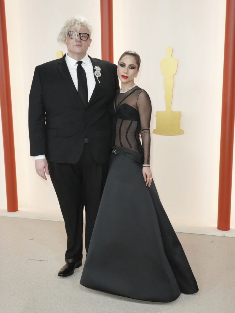 BloodPop a Lady Gaga počas príchodu na 95. ročník udeľovania cien americkej Akadémie filmových umení a vied (Oscar 2023). Los Angeles (Dolby Theatre), 12. marec 2023. Foto: Jordan Strauss/Invision/AP.
