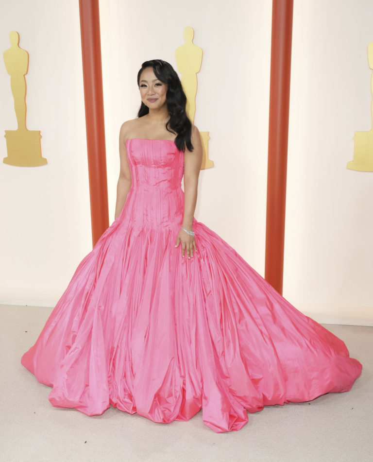 Stephanie Hsu počas príchodu na 95. ročník udeľovania cien americkej Akadémie filmových umení a vied (Oscar 2023). Los Angeles (Dolby Theatre), 12. marec 2023. Foto: Jordan Strauss/Invision/AP.