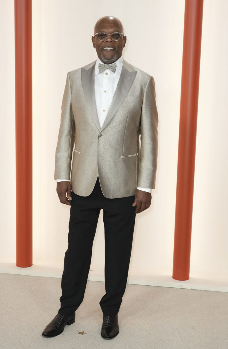 Samuel L. Jackson počas príchodu na 95. ročník udeľovania cien americkej Akadémie filmových umení a vied (Oscar 2023). Los Angeles (Dolby Theatre), 12. marec 2023. Foto: Jordan Strauss/Invision/AP.